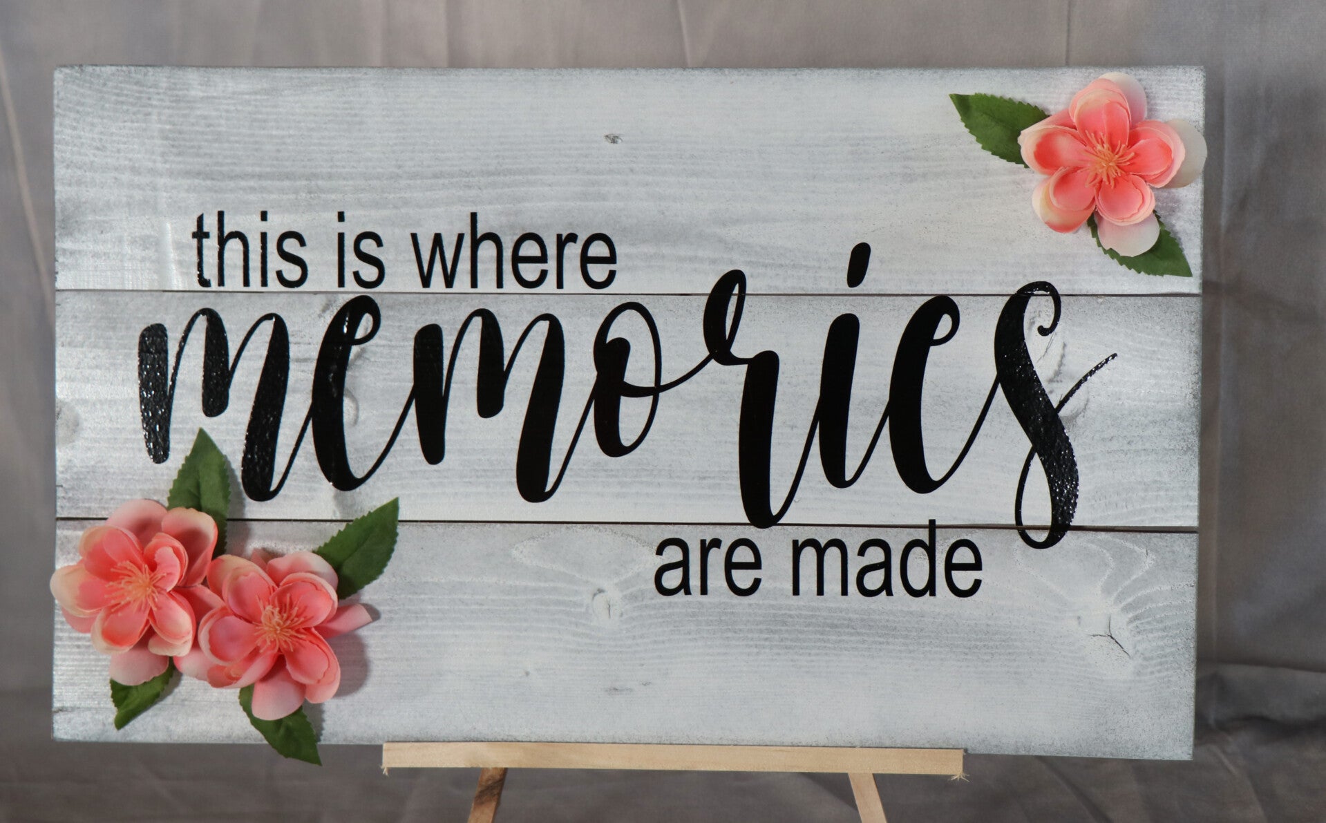 Memories are made 10 x 18 inches. This in on wood that is painted. We can change the flower color or leave them off.
