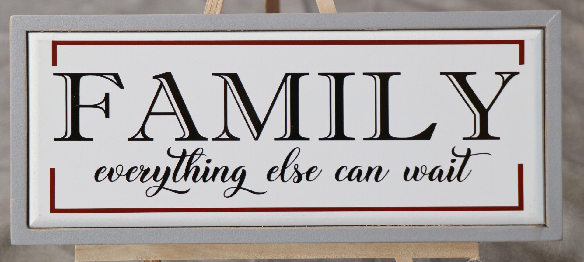 Family Everything Else Can Wait. On a wood frame. 5 1/2 x 15
