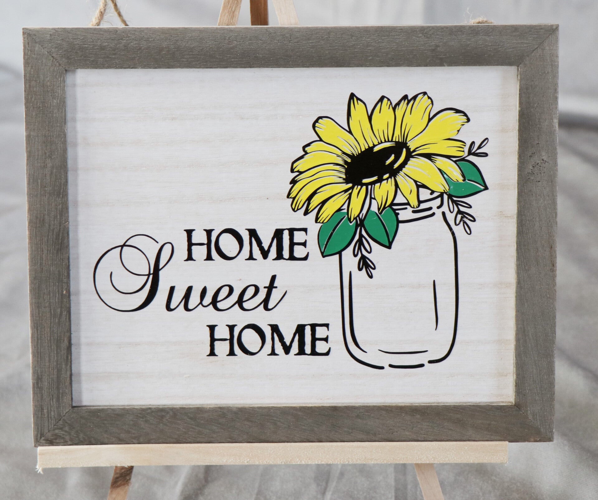 Home Sweet Home Sunflower is in a wood frame. 8 x 10 inches.