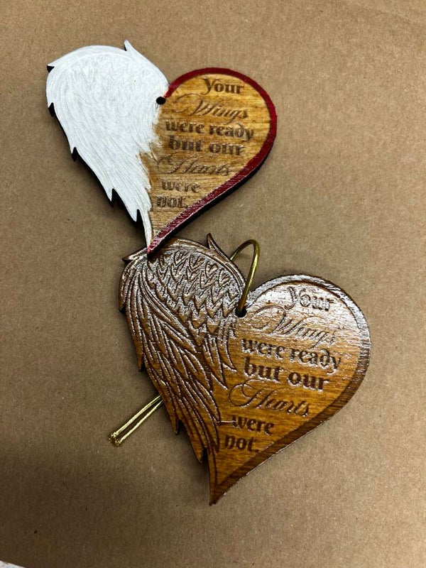 Friendship or memorial ornaments. Double wing ornaments can have name and date added free.